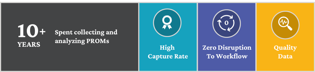 - Disruption to workflow: Whether collecting a survey while the patient is checking in for surgery or during a 1-year post-operative clinic visit, workflows need to be adjusted and extra time allocated for PROM collection.
